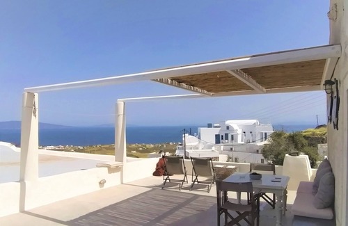 This is a small house built in the traditional Santorinial way, on the top of an old winery (“Winery house”). Although connected to the winery's court via steep stone stairs, this house has an independent entrance from the pedestrian road.